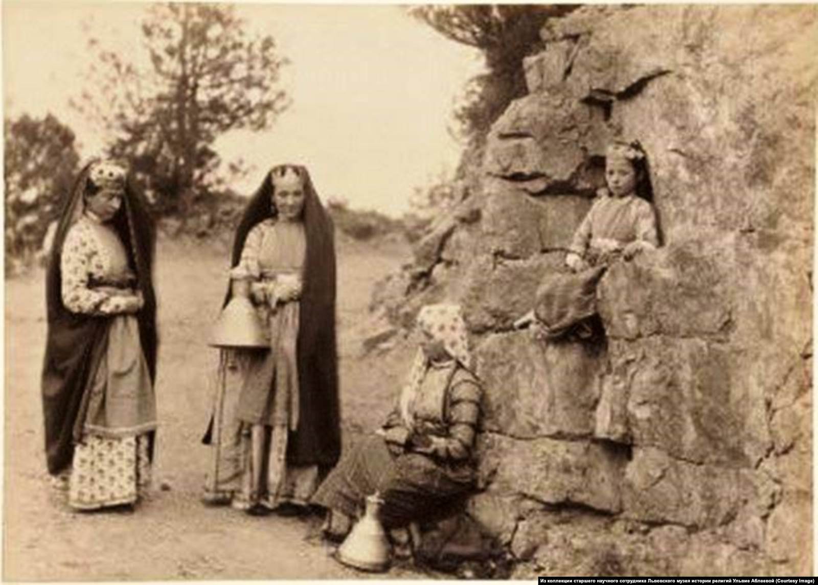"В начале XX века некоторые девушки ходили с открытой головой, особенно если на плечах у них была шаль или шарф. Но это было уже поздним явлением и осуждалось старшим поколением", – отмечает этнограф Евгения Студенецкая в своей книге "Одежда народов Северного Кавказа".