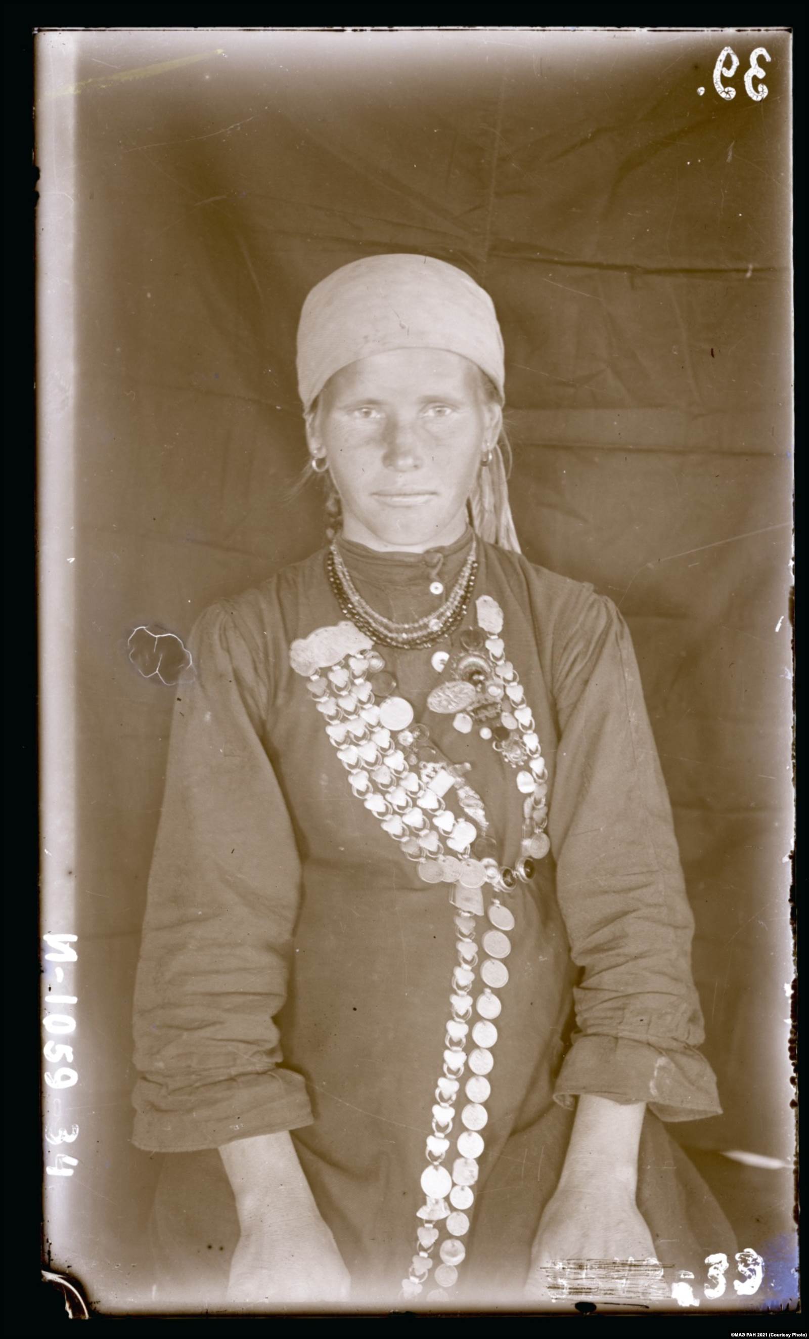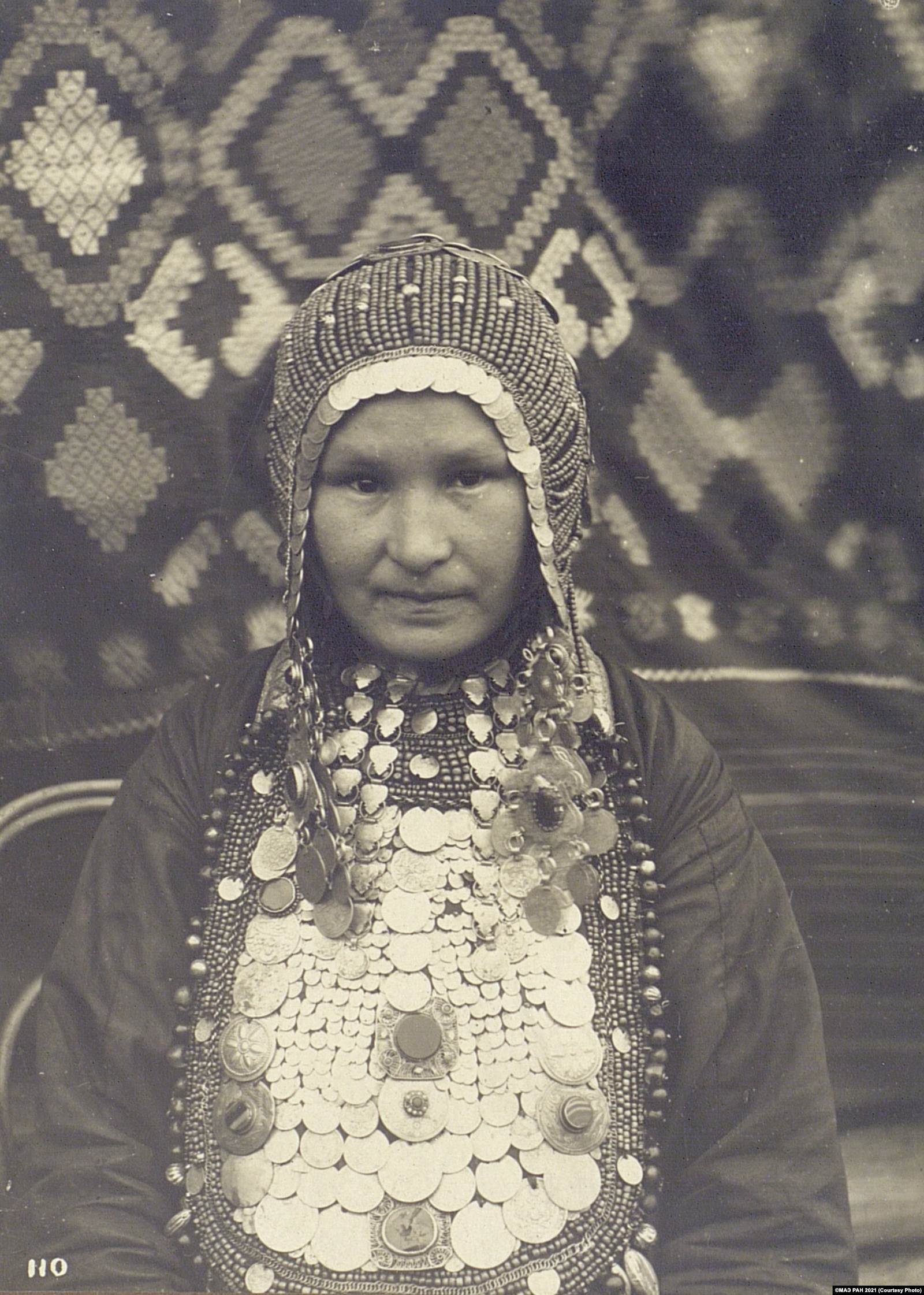 "Этот платок не снимали ни днем, ни ночью, – указывает исследовательница. – Поверх него, особенно при выходе из дома, обязательно надевали большой платок или шаль".